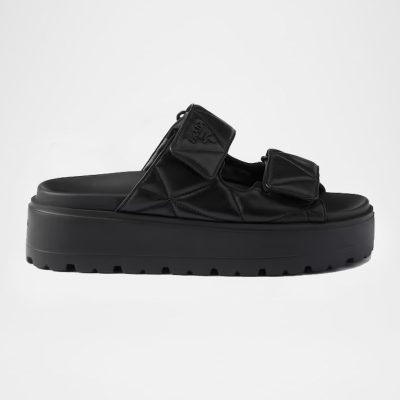 Padded Double Velcro Nappa Leather Platform Slides