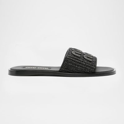 Raffia-effect Woven Fabric Slides