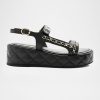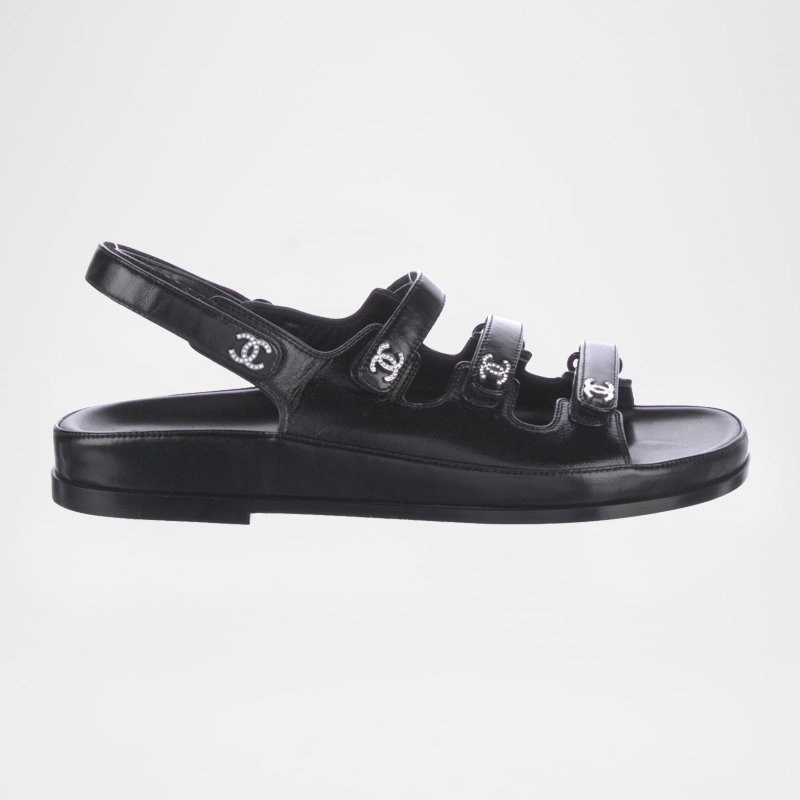 Leather Slingback Crystal Triple Velcro Dad Sandals